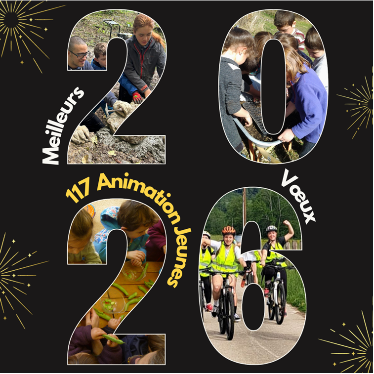 La Présidente de 117 Animation Jeunes,les membres du conseil d’administration et du bureau,le Directeur de 117 Animation Jeuneset les équipes de professionnels,les enfants et les jeunes, vous présentent leurs meilleurs vœux 2026 !