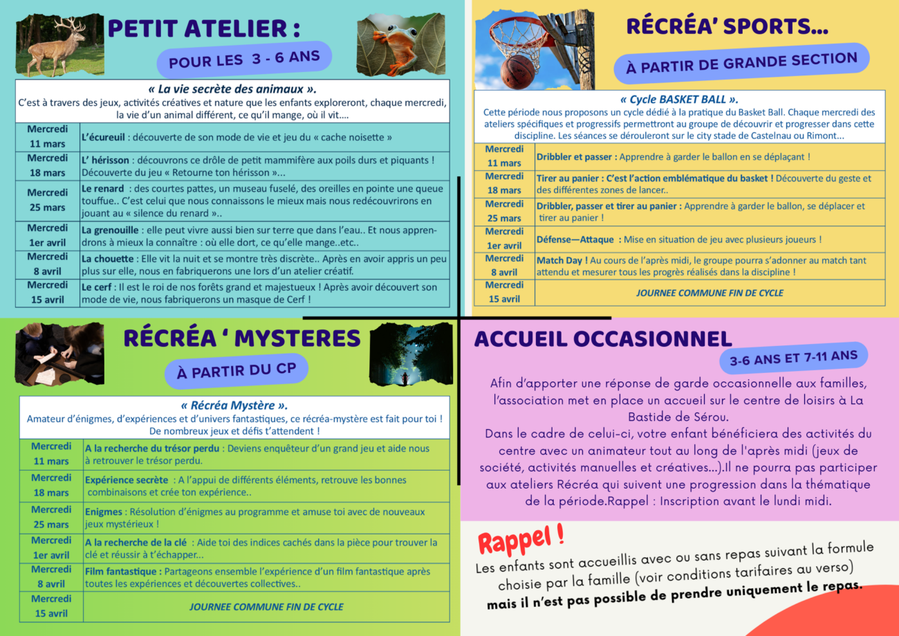 Un programme spécifique pour chaque groupe d’âges.. 3/6 ans – 7/10 ans et jeunesse !