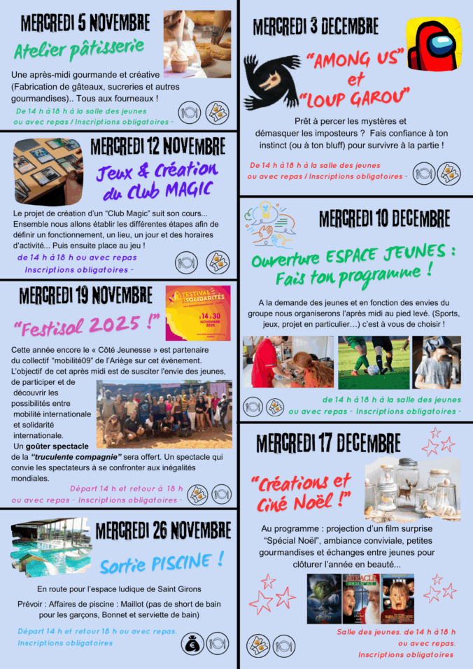 Ateliers culinaires, club Magic, jeux de société ou sortie piscine… Des propositions choisies par les jeunes et diversifiées pour plaire au plus grand nombre !