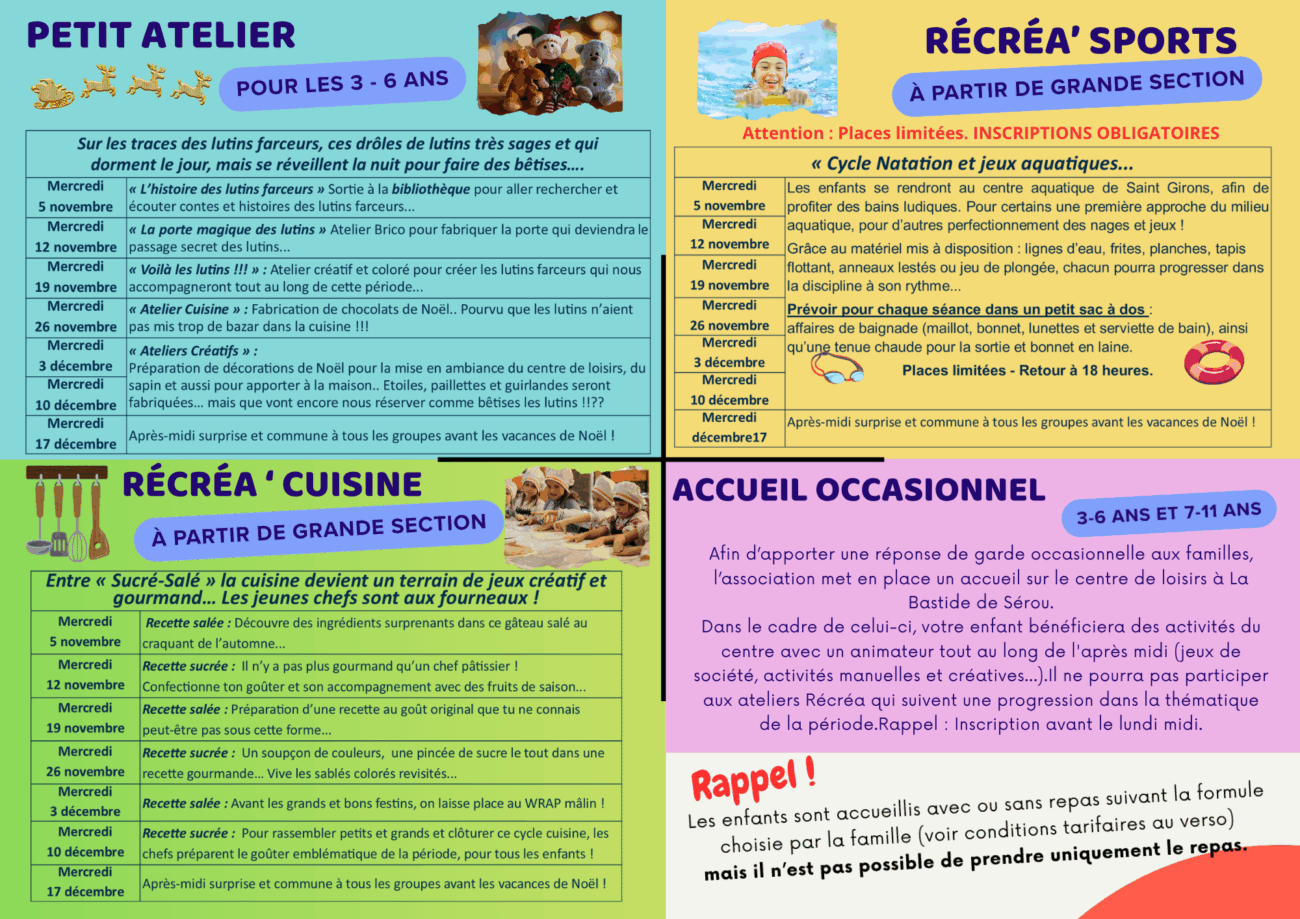 Découvrez les propositions automnales et attention certains cycles ont des places limitées ! Il est impératif d’inscrire ou ré-inscrire vos enfants !